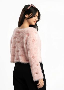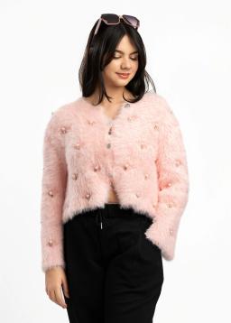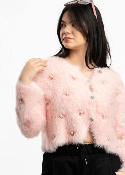 Wrap yourself in luxurious comfort with this elegant pink faux fur cardigan. Adorned with delicate pearl embellishments, it adds a touch of sophisticated charm to any outfit. Perfect for cozy evenings or adding a glamorous layer to your favorite dress. Experience unparalleled softness and timeless style.