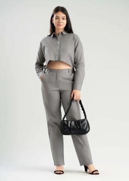 Effortlessly chic meets everyday comfort in this Women's Gray Cropped Button-Up Shirt. Crafted from a soft, breathable fabric, it offers a flattering relaxed fit that pairs perfectly with high-waisted jeans or skirts. The versatile gray hue makes it a foundational piece for any wardrobe, easily dressed up or down. Button it up for a polished look or wear it open as a light layer. Its cropped silhouette adds a modern touch, creating a stylish silhouette that flatters and elongates. Discover your new go-to for effortless style and comfort.