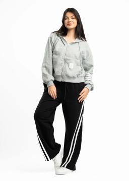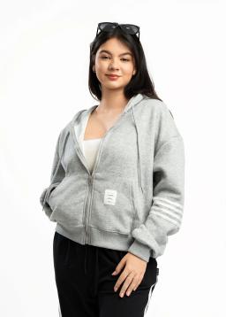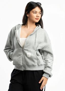 Cozy up in effortless style with our Women's Grey Zip-Up Hoodie. Featuring crisp white arm stripes for a sporty yet chic look, this hoodie is crafted from ultra-soft fabric for ultimate comfort. The convenient full zip makes layering a breeze, perfect for those cooler days or casual outings. Whether you're running errands or relaxing at home, this versatile hoodie offers warmth and a touch of athletic flair.
