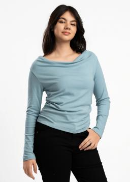 Effortless elegance meets everyday comfort in our Women's Light Blue Draped Neck Long-Sleeve Tee. Crafted from sumptuously soft fabric, this tee features a sophisticated draped neckline that flatters beautifully and adds a touch of refined style. The relaxed yet chic silhouette makes it perfect for layering or wearing on its own, offering versatile styling for any occasion. Experience breathable comfort and a universally flattering fit that moves with you. Elevate your basics with this essential piece, designed to make you look and feel your best.