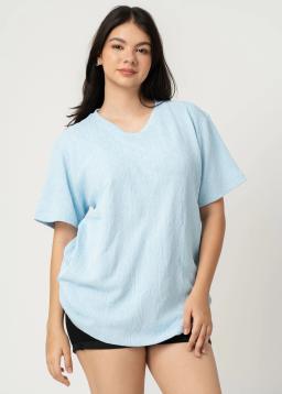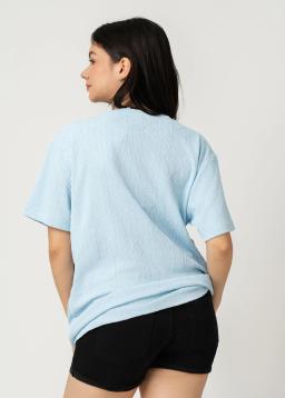 Effortlessly chic and endlessly versatile, this Women's Light Blue Textured Crew Neck T-Shirt is your new go-to. Crafted from a breathable, soft fabric with a subtle textured weave, it offers premium comfort and a touch of understated style.