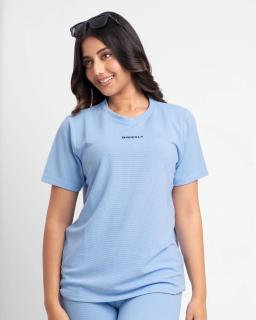 Effortless style meets everyday comfort. This women's light blue crew neck tee features a subtle, textured weave for a touch of elevated detail.