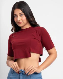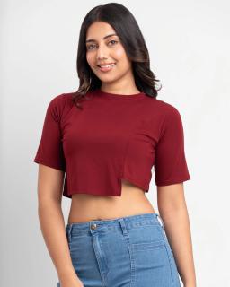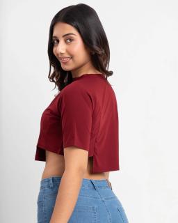 Effortlessly chic, this maroon solid crop top is a wardrobe essential. Crafted for comfort and style, its flattering silhouette pairs perfectly with high-waisted jeans, skirts, or shorts for a trendy, put-together look. The rich maroon hue adds a touch of sophistication, making it ideal for both casual outings and dressed-up evenings. Enjoy versatile styling and a comfortable fit that makes you feel confident all day long.