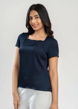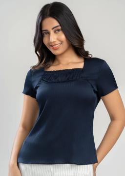 Elevate your professional wardrobe with our Women's Navy Office Wear Blouse. Crafted from a comfortable, breathable fabric, this versatile blouse offers a polished look that transitions seamlessly from desk to dinner. The classic navy hue is universally flattering and pairs effortlessly with skirts, trousers, or blazers. Designed for all-day comfort and sophisticated style, it features a flattering silhouette that drapes beautifully. Look and feel your best every workday.