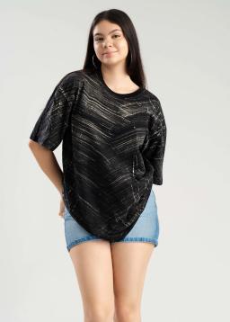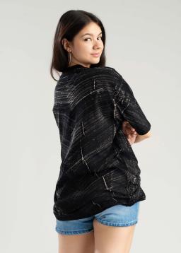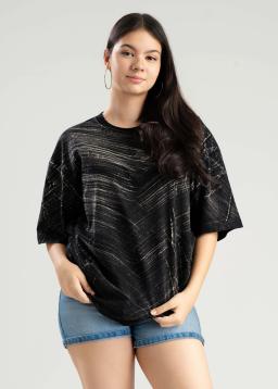 Embrace effortless style with our Women's Oversized Abstract Print Black T-shirt. This tee offers a relaxed, comfortable fit perfect for everyday wear. The striking abstract print adds a touch of modern artistry, making it a versatile statement piece. Crafted from soft, breathable fabric, it ensures all-day comfort whether you're lounging at home or out and about. Dress it up with jeans and a jacket or keep it casual with shorts. Your new go-to for chic, laid-back vibes.