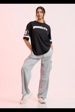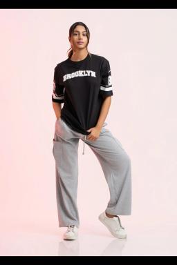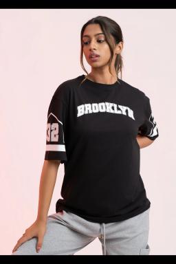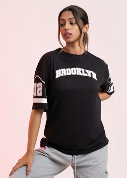 Channeling effortless NYC cool, this oversized black tee features a stylish Brooklyn print. Soft, comfortable fabric makes it perfect for everyday wear. A relaxed fit offers ultimate comfort and style.