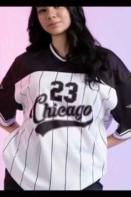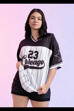 Show off sporty streetwear vibes with our Women's Oversized Chicago 23 Jersey T-shirt. Featuring bold varsity-inspired graphics with the iconic “Chicago 23” design, this oversized tee combines comfort and urban edge. Perfect for pairing with jeans, biker shorts, or sneakers for a casual, athletic-chic look.
