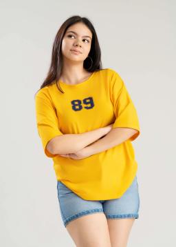 Embrace effortless cool with this Women's Oversized Yellow T-shirt. Featuring a bold "89" graphic, it's the perfect blend of retro vibes and modern comfort. Crafted from ultra-soft fabric, this tee offers a relaxed, oversized fit for ultimate lounging or stylish layering. Its vibrant yellow hue instantly brightens your look, making it a versatile go-to for any casual occasion. Effortlessly pair it with jeans, shorts, or leggings for an on-trend statement.