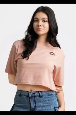 Stay cool and stylish in this women's pink cropped graphic tee. A perfect blend of comfort and trend, this short-sleeved top features a unique graphic design. Ideal for warm weather and casual outings.
