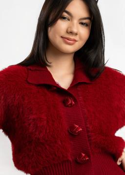 Wrap yourself in luxurious comfort with our Women's Red Faux Fur Look V-Neck Cardigan. Experience the indulgent softness of faux fur without the compromise, offering an effortlessly chic and cozy layer for any occasion. The flattering V-neck design adds a touch of sophistication, making it perfect for dressing up jeans or layering over dresses. Stay warm, stylish, and feel fabulous all season long.