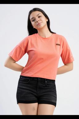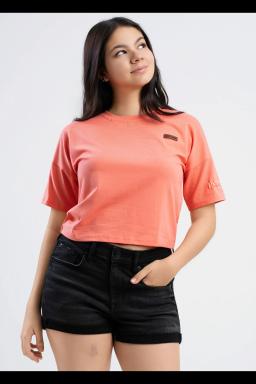 Stay comfy and cute in our Women's Relaxed Fit Short Sleeve Peach Crop Tee. Soft, breathable fabric and a flattering relaxed fit make this tee perfect for everyday wear. The adorable peach color adds a touch of sweetness to any outfit.