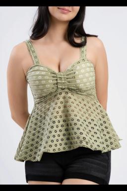Flattering and flirty, this women's ruffled floral peplum cami crop top offers a touch of romance. The delicate floral print and charming peplum detail create a feminine silhouette, perfect for pairing with high-waisted jeans or a skirt.