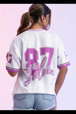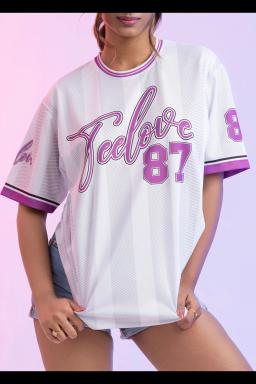 Channeling effortless cool, this Teeloov 87 oversized tee features a stylish white and purple striped design. Perfect for a relaxed weekend look or dressed up with jeans. Soft, comfortable fabric ensures all-day wear.