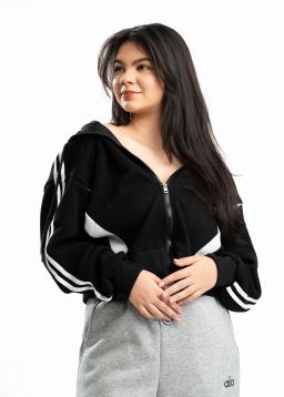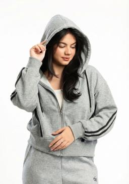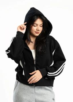 Embrace effortless style and comfort with our Women's Wrapped 3 Stripes Full Zip Hoodie Jacket. Featuring a flattering wrapped silhouette and iconic 3-stripe detailing, this jacket offers a modern, athletic vibe. Crafted from a soft, breathable fabric, it's perfect for layering, keeping you cozy and chic whether you're heading to the gym, running errands, or relaxing at home. The full zip allows for adjustable coverage, making it your go-to for transitional weather. Look good, feel great.