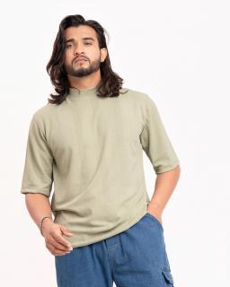 Elevate your everyday style with this Men's Olive Green Mock Neck Textured T-Shirt. Crafted from a uniquely textured fabric, it offers a premium feel and a subtle visual interest that sets it apart from ordinary tees.