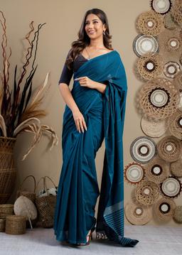 Drape yourself in the regal allure of our Peacock Teal Saree. Crafted from luxurious fabric, this exquisite piece shimmers with a captivating jewel-toned teal, reminiscent of a peacock's vibrant plumage. Its elegant drape and intricate details create a sophisticated silhouette, perfect for making a statement at weddings, festive celebrations, or any special occasion.