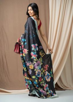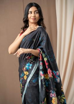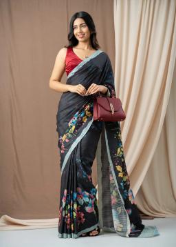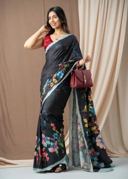 Drape yourself in elegance with this Premium Mulmul Cotton Black Saree. Crafted from the finest mulmul cotton, it offers unparalleled softness and breathability for all-day comfort.