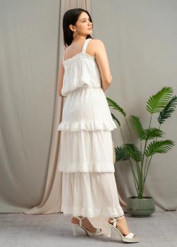 Effortless elegance awaits with The Cloud-White Tiered Midi. This dress features delicate, flowing tiers that create a beautiful, flattering silhouette.